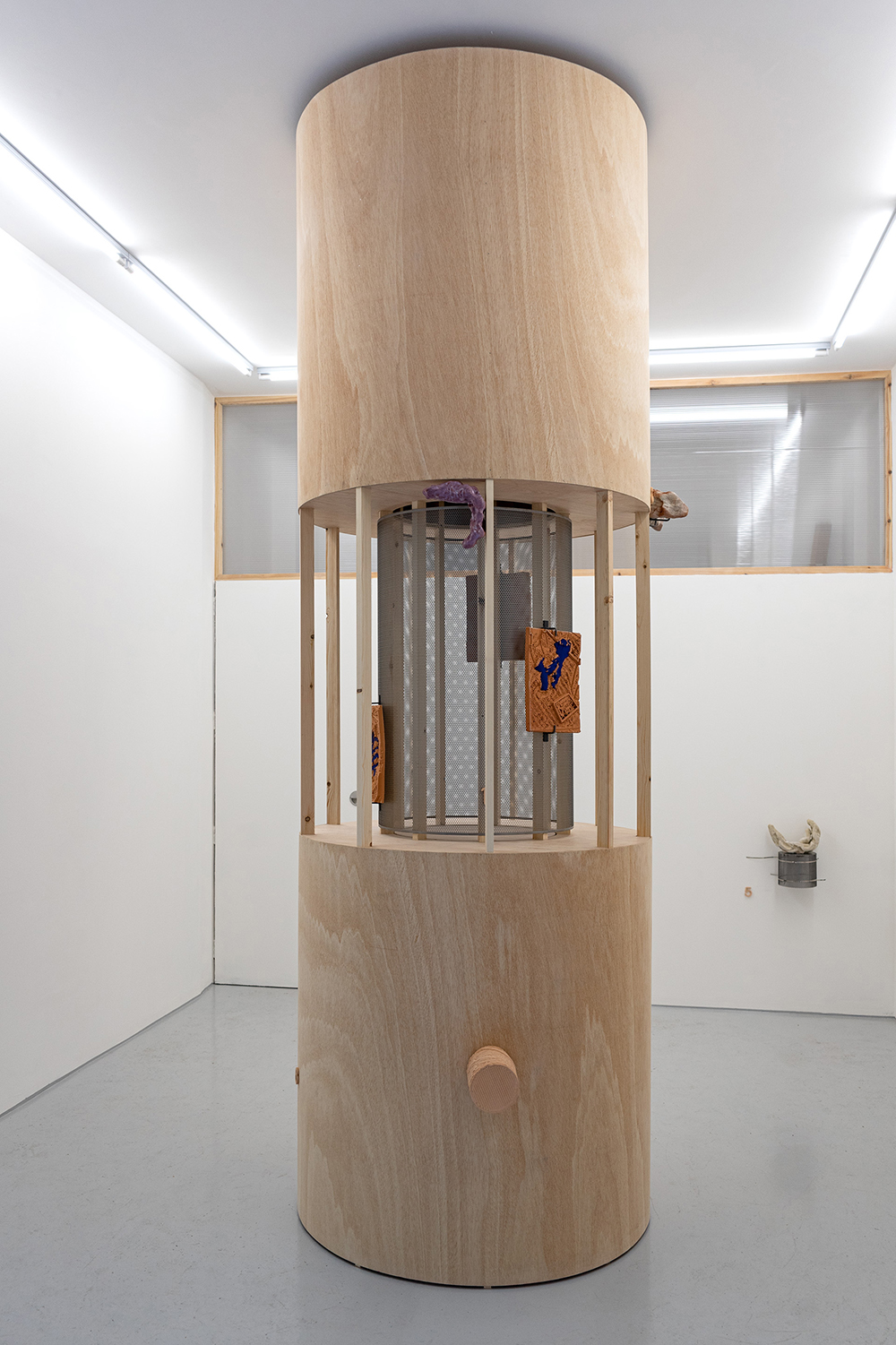 Six sculptures, each: laser-cut wood, AC engine, microprocessor, relay, powder coated steel, stainless steel bolts, rubber; ca. 200 x 200 x 45 cm