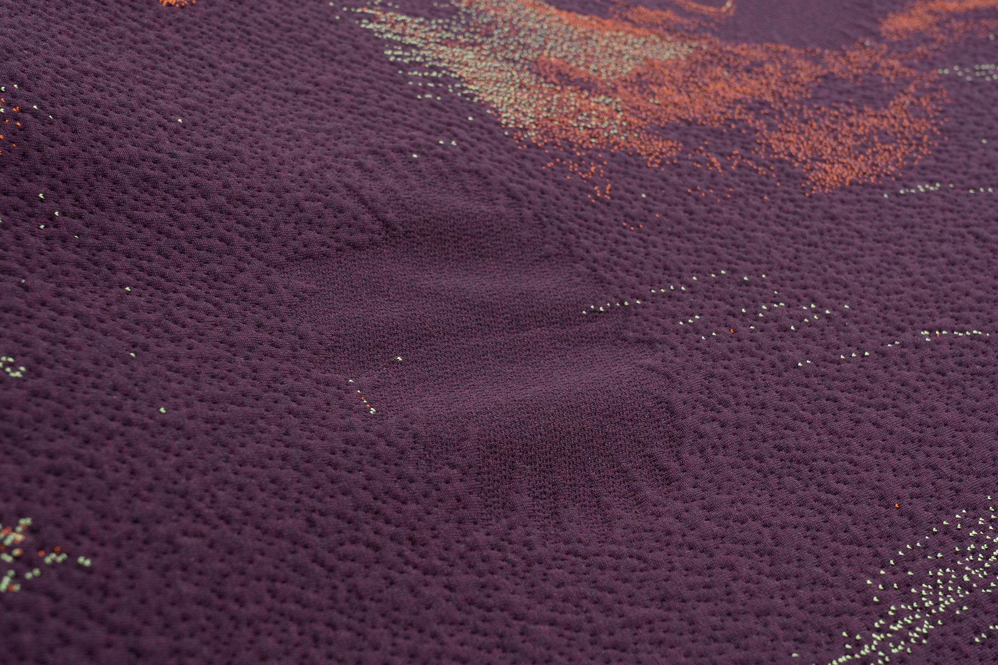 The work Reading A Reflection is a large textile installation. It depicts different spaces connected to imagination and memory and how these are shaped by generative technologies. I am interested in textile as a mobile image – something hovering between a depiction and an object, something pictorial and sculptural at the same time.